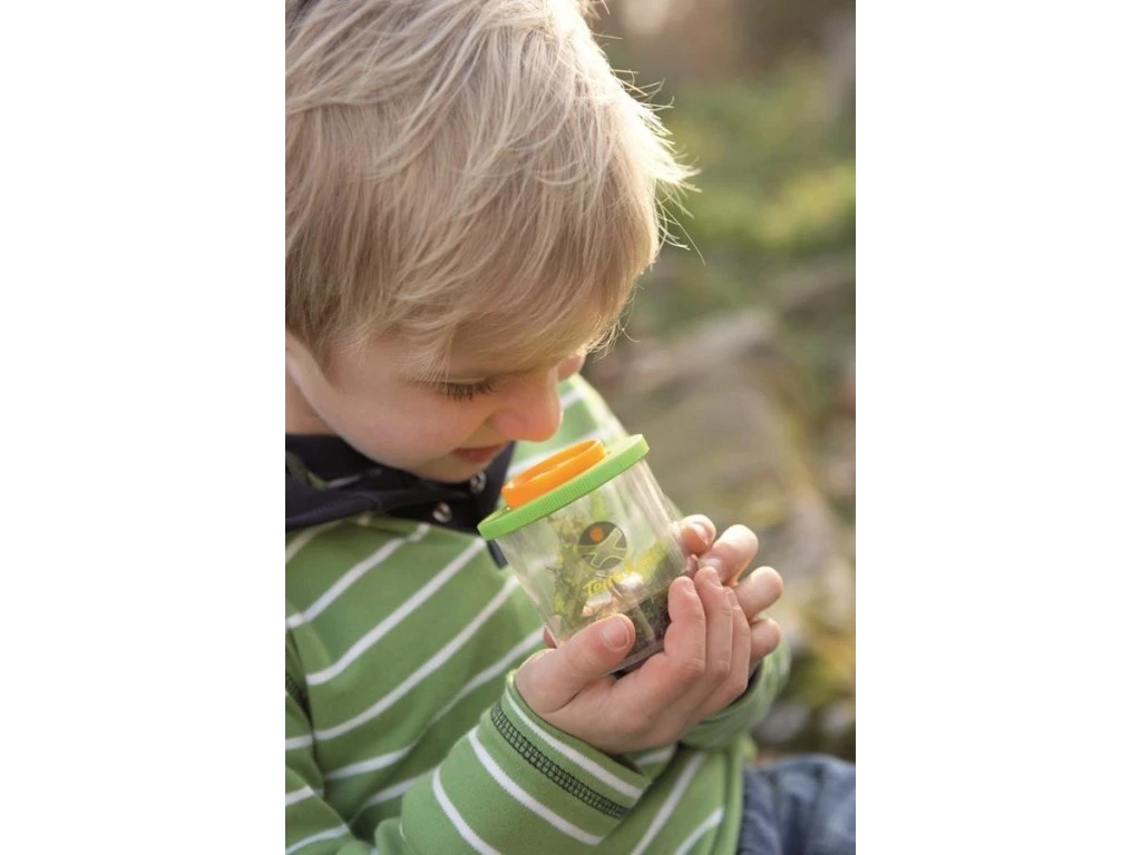 Co všechno se dá najít na zahradě, na louce nebo v lese? S touto nádobkou můžete detailně prozkoumat zajímavý svět hmyzu přímo v přírodě díky lupě umístěné na víčku. Nádobka obsahuje i umělého pavouka pro malé pozorovatele.