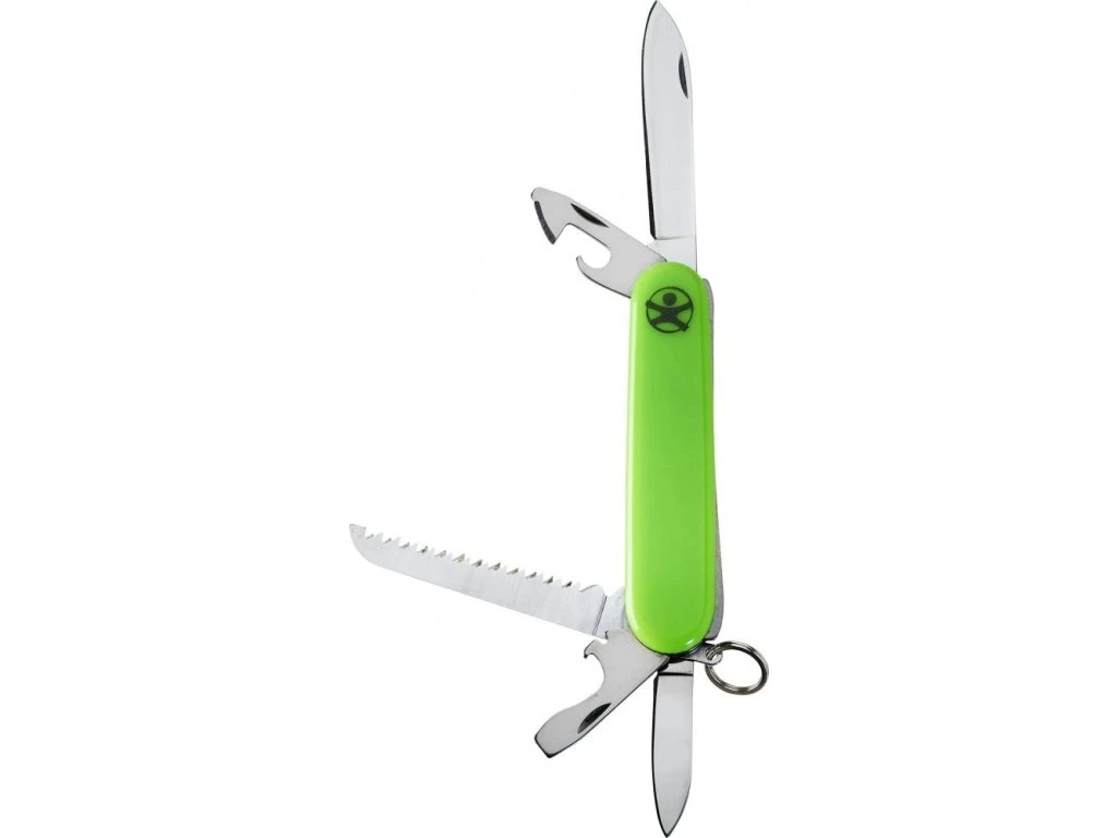 Dobře vybaven na další dobrodružství: Tento kvalitní dětský kapesní nůž je vybaven pilkou na dřevo, jednou malou a jednou velkou čepelí nože, otvírákem na konzervy a dvojúčelovým otvírákem/šroubovákem na lahve.Čepele z nerezové oceli. S očkem na klíčenky a řetízkem (délka cca 40 cm) na připevnění na batoh, aby byl kapesní nůž v bezpečí, ale vždy po ruce. Má všechno, co mladý průzkumník potřebuje.