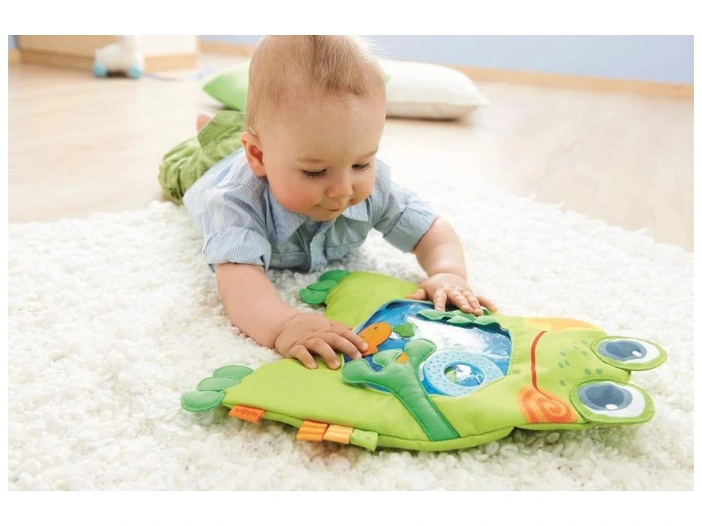 Tato vodní podložka je dobrodružstvím pro všechny děti. Zrcadlové prvky, listy, srdce a ryby lze bez námahy posouvat sem a tam. Je to zábava a zároveň podporuje rozvoj motoriky v poloze na bříšku.