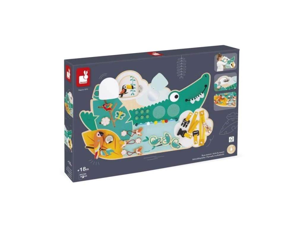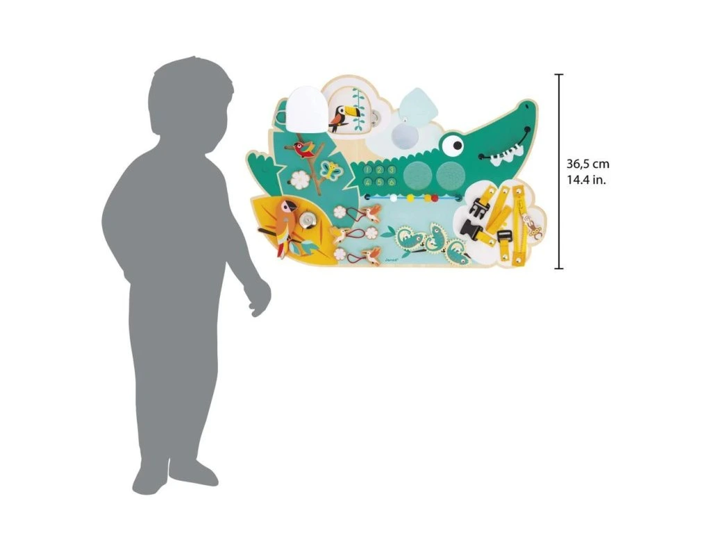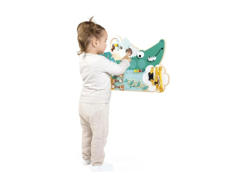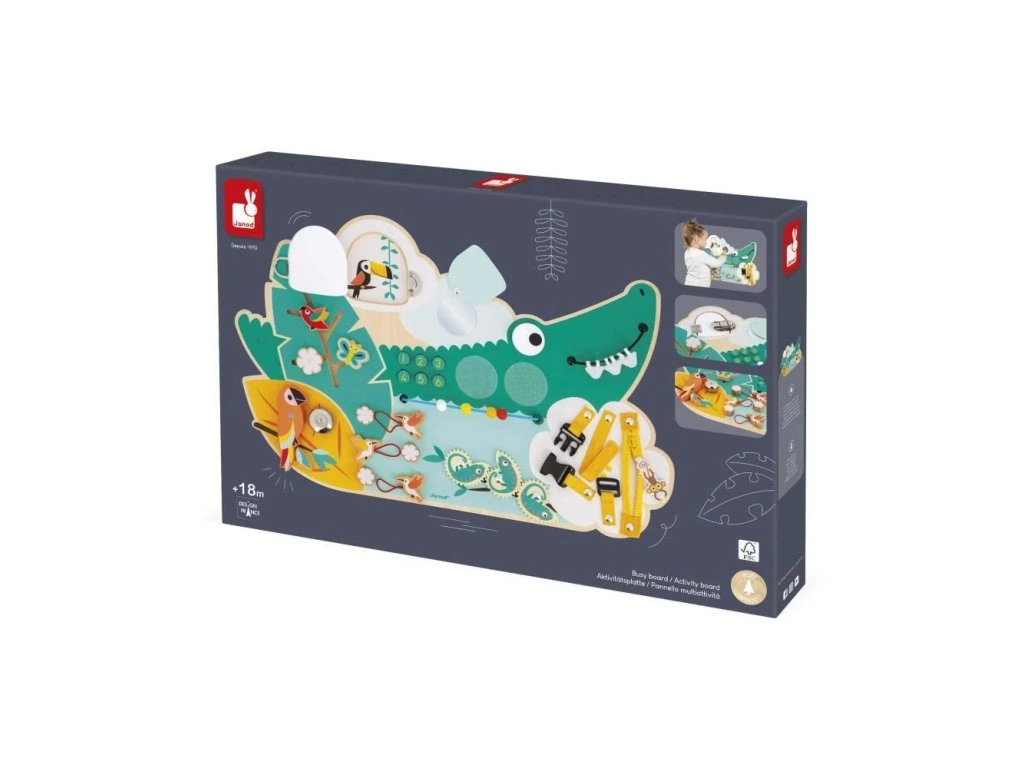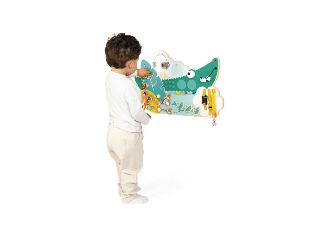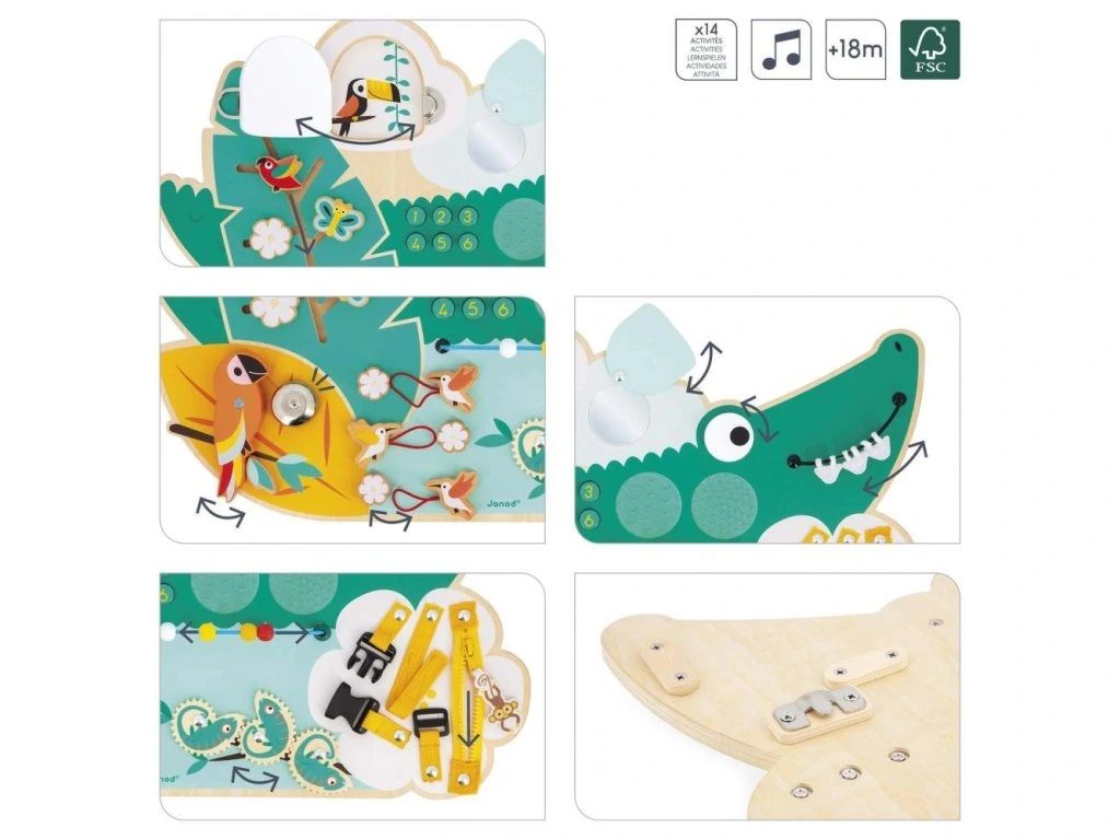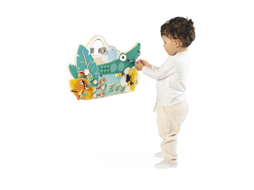 Croco, ukrytý uprostřed džungle, čeká jen na to, až si s ním vaše dítě přijde hrát a objeví více než 14 aktivit! Tato komplexní hračka je ideální na rozvoj zvědavosti a motoriky a poskytuje hodiny zábavy pro nejmenší. Hračka je vyrobena ze dřeva FSCTM a vhodná pro děti od 18 měsíců.