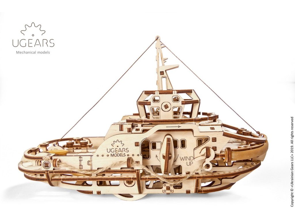 Stavebnice mechanického modelu remorkéru sestává ze 169 dílů vyrobených z vysoce kvalitního dřeva a má vše, co budete potřebovat k montáži (včetně nití, háků a lan). Kvalita dílů je špičková: pro řezání předmětů z překližkové desky se používá laserová metoda, jejímž výsledkem jsou přesně vykrojené díly. Pro vytvoření kompletního modelu je třeba vytáhnout detaily z desek a sestavit. Stejně jako všechny ostatní modely Ugears, i remorkér přichází s podrobnými, plnobarevnými, opravdu jednoduchými pokyny a pro úplné sestavení se nevyžaduje lepidlo ani speciální nástroje.