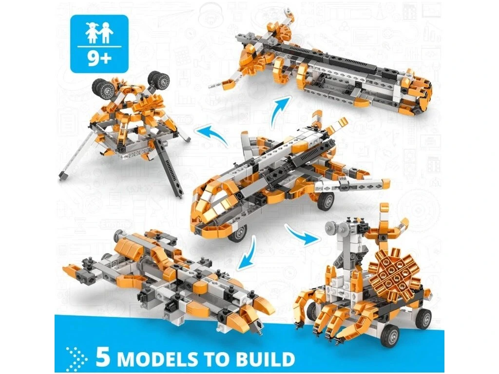 Série Engino – Inventor Mechanics přináší tematické stavebnice s možností vytvářet více modelů v rámci jedné sady. Každá souprava obsahuje také jeden působivý hlavní model, který děti inspiruje k objevování principů mechaniky a inženýrství.