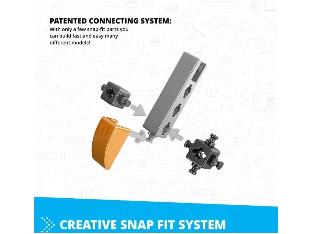 Systém ENGINO® využívá patentované komponenty, které zvyšují technickou přesnost i estetickou hodnotu modelů. Mezi ně patří precizní kola, realistické mechanismy a zaklapávací zakřivené povrchy, díky kterým je stavění jednoduché, pevné a zábavné.