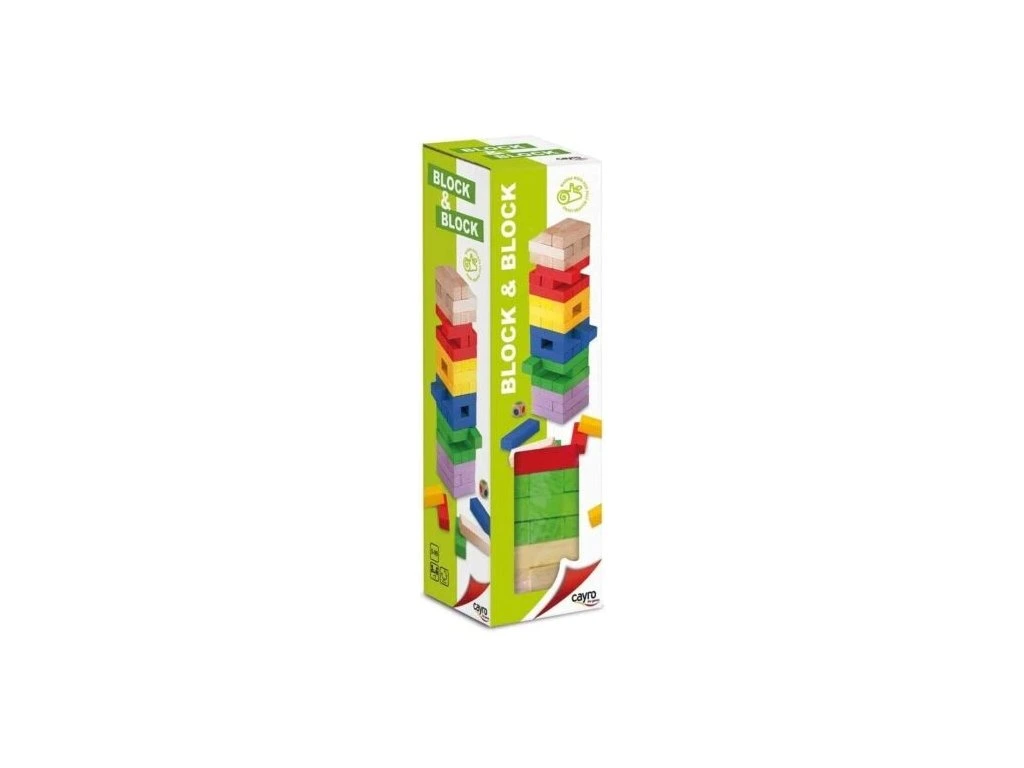 Poskládejte věž podle šablony, hoďte kostkou a pomalu vytahujte barevné dílky tak, aby věž nespadla. Vyhrává hráč s největším počtem barevných dílků. Hra podporuje soustředění a procvičení jemné motoriky.