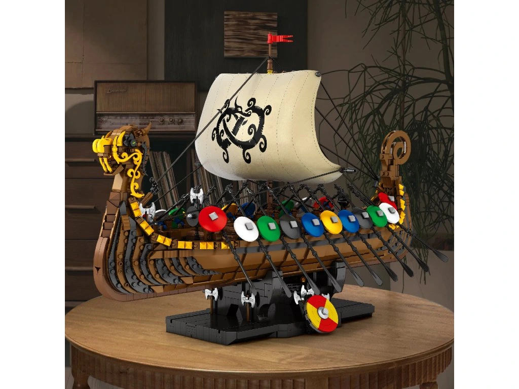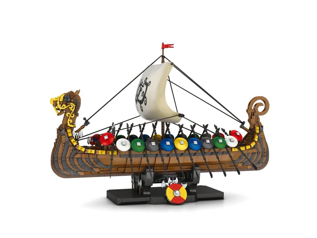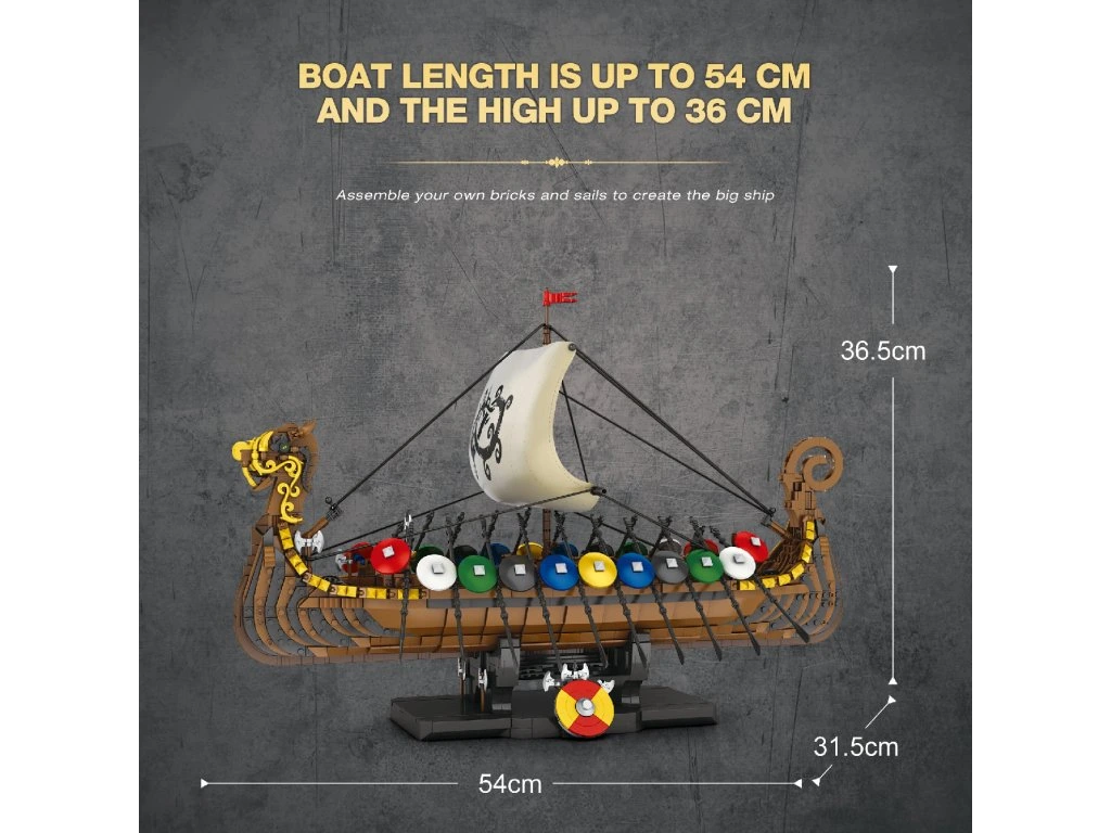 Vydejte se na dobrodružnou plavbu do dávných časů s modelem inspirovaným historickými drakkary, slavnými válečnými loděmi severských bojovníků. Tento detailně propracovaný model z 2547 dílků nabízí jedinečnou kombinaci elegance, realismu a historického ducha. Po sestavení má délku 54 cm a stane se dominantním kouskem každé sbírky.