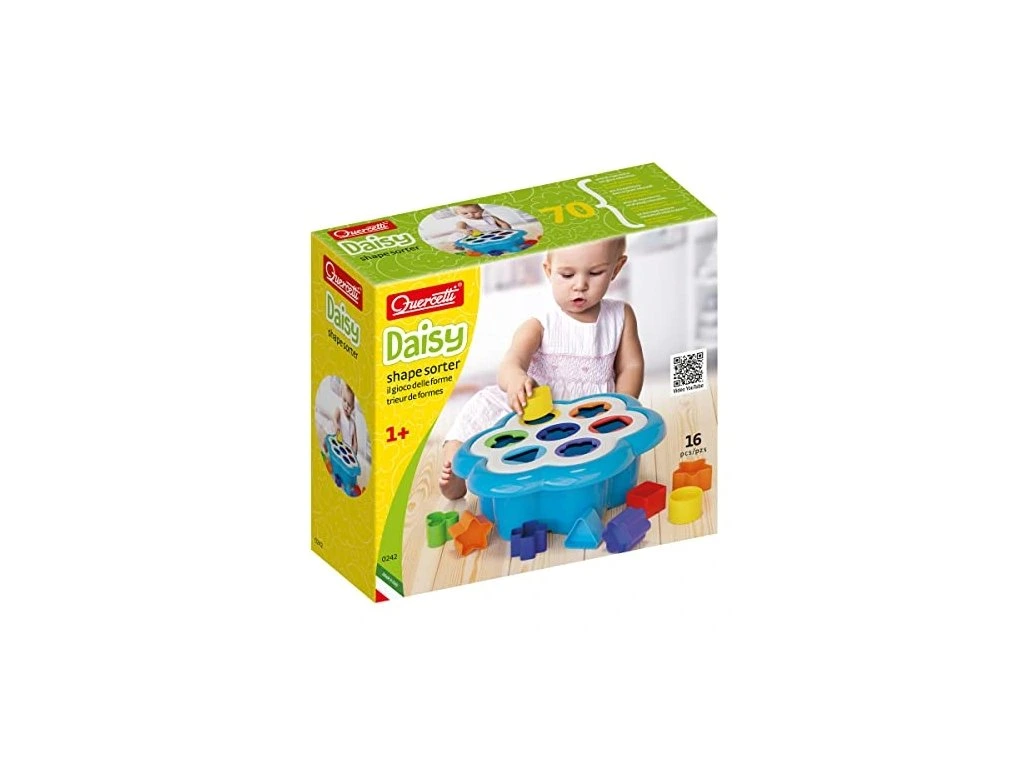 Stavebnice Daisy Shape Sorter je skvělým nástrojem na rozvoj jemné motoriky, tvořivosti a schopnosti rozlišovat barvy a tvary u dětí. Sada obsahuje 14 různobarevných dílků v sedmi různých tvarech, které děti učí správně rozpoznat a vložit do odpovídajícího otvoru.Po skončení hry je možné všechny díly prakticky uložit do schránky ve tvaru květiny, což umožňuje jednoduché uskladnění a přenášení. Všechny díly jsou umyvatelné, čímž se zabezpečuje hygienická a bezpečná hra. Daisy Shape Sorter nabízí dětem hravý a vzdělávací zážitek, který podporuje jejich růst a učení.