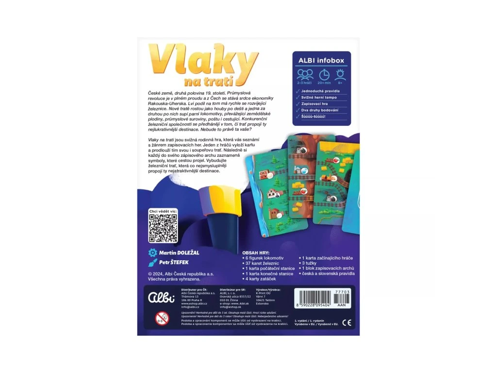 Vlaky na trati od Albi je rodinná hra typu Flip and Write, která vás přenese do 19. století. Staňte se architekty železničních tratí a plánujte své tratě strategicky, abyste získali co nejvíce bodů.
