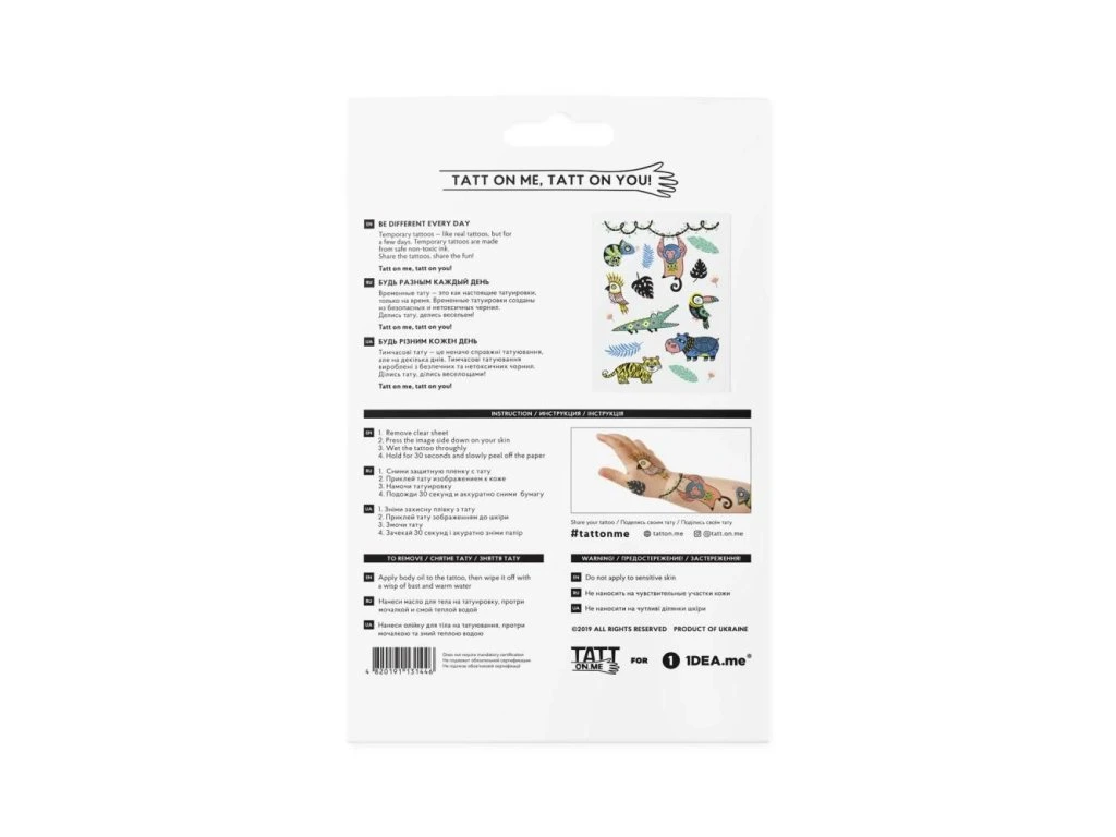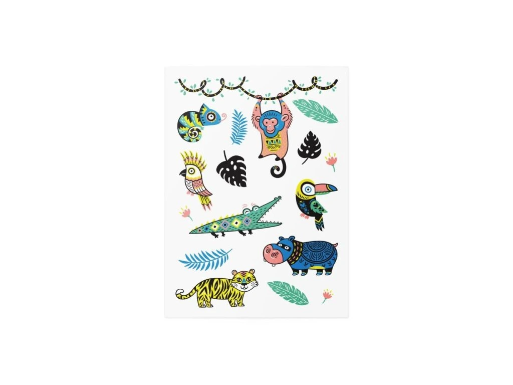 Vítejte v džungli! Tato cool, zářivá a trochu bláznivá zvířátka milují děti i dospělí. Vystřihněte, vyberte si podle nálady a natetujte tetování na tělo v jakémkoliv množství.Tetovací mix obsahuje 1 hárek A6 plný tetováček.