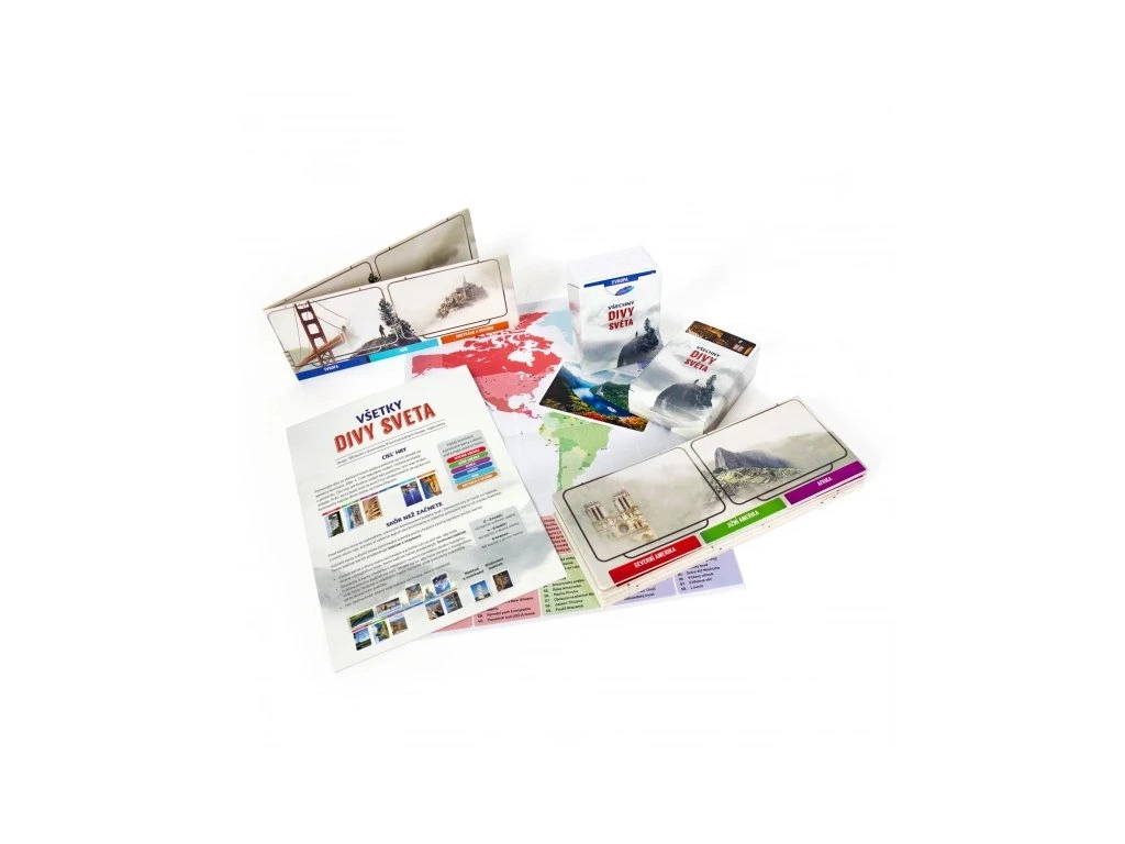 Naša planeta je plná neuvěřitelných míst – od zázraků přírody po úžasné stavby vybudované lidmi.Vydejte se na cestu kolem světa a poznejte jedny z nejúžasnějších divů naší planety! Pokuste se pojmenovat div světa vyobrazený na kartičkách a určit, kde se nachází a jaký je jeho účel. Za správnou odpověď získáte kartu, kterou potom umístíte na kontinentální desku. Za každou kartu umístěnou na správný kontinent získáváte bod. Vítězem je hráč s nejvyšším počtem bodů!