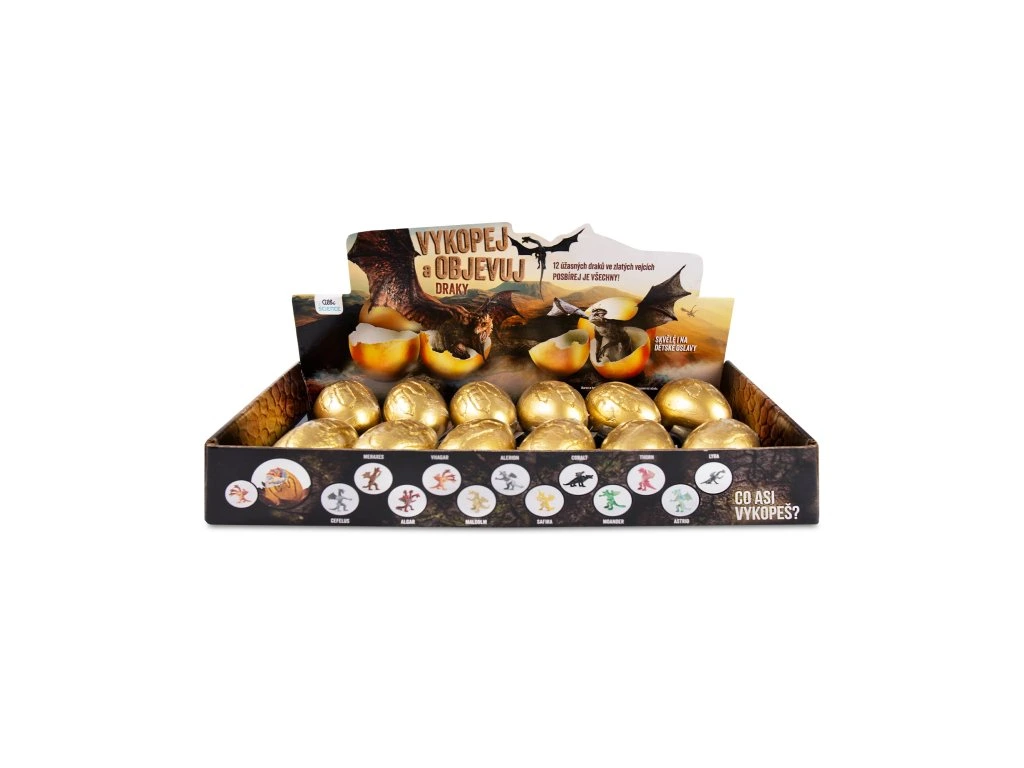 Jedinečná sada Vykopej a objevuj – Draci od Albi Science skrývá 12 zlatých vajec s překvapením v podobě dračích figurek. Každá figurka je úplně odlišná a rozvíjí zvědavost a jemnou motoriku dětí. Cena je uvedena za 1 ks vajíčka.