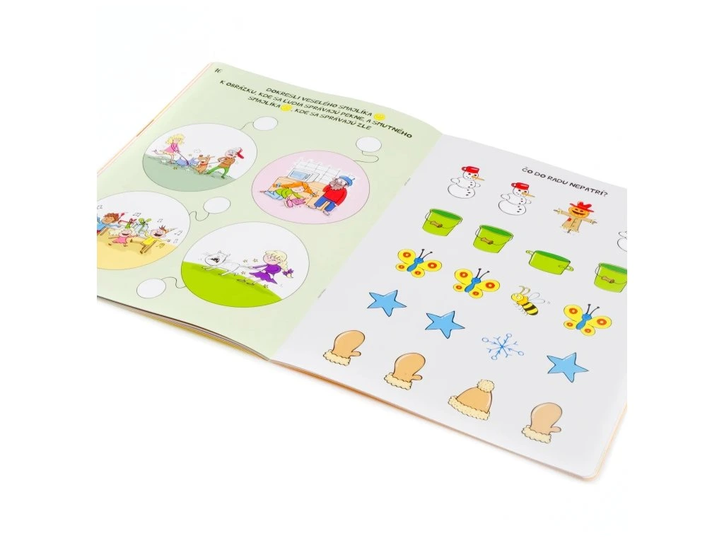 Každý sešit má 32 stran plných zajímavých úloh, které rozvíjejí grafomotoriku, zlepšují koncentraci, pozornost, paměť, sociální chování, logické a matematické uvažování.